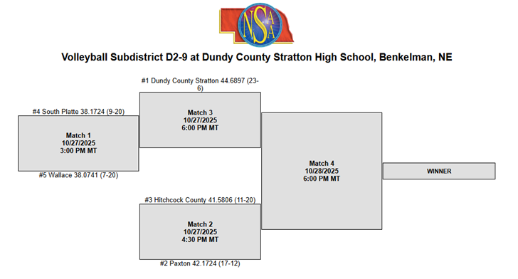 Football First Round Playoffs:  Friday, October 31, 2025:  7:00 vs. Twin Loup in Trenton